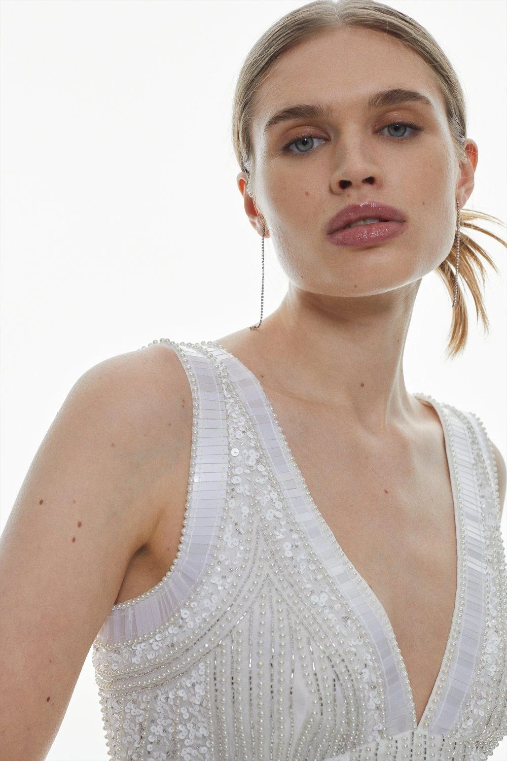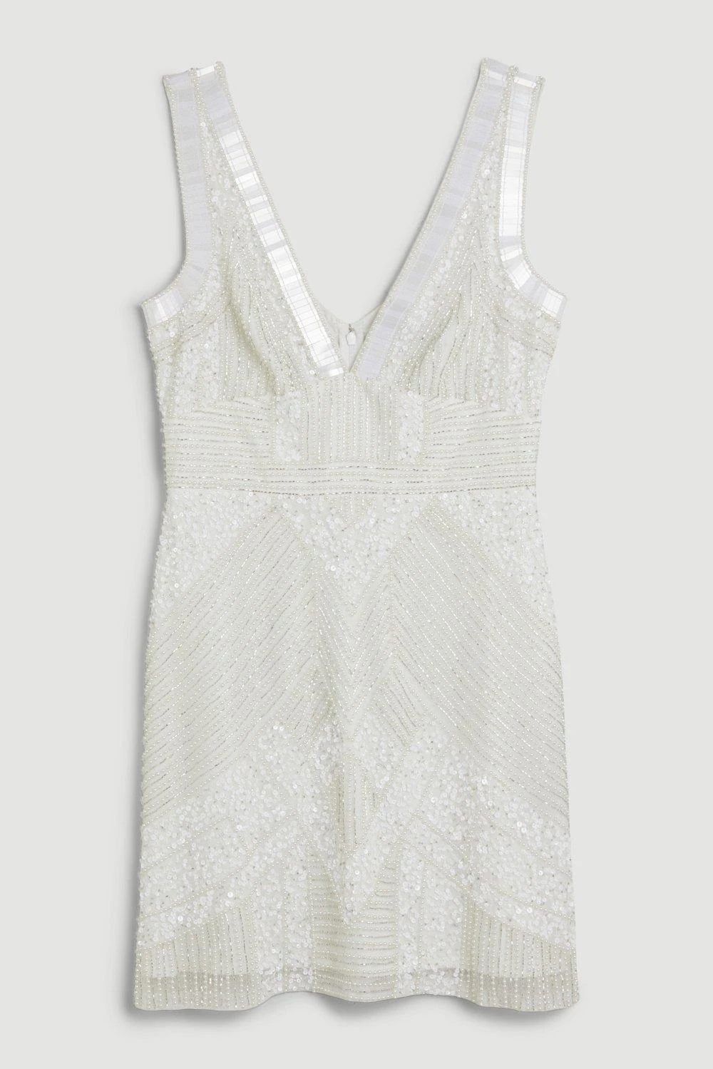 Karen Millen Armour Beaded Detailed Woven Mini Dress