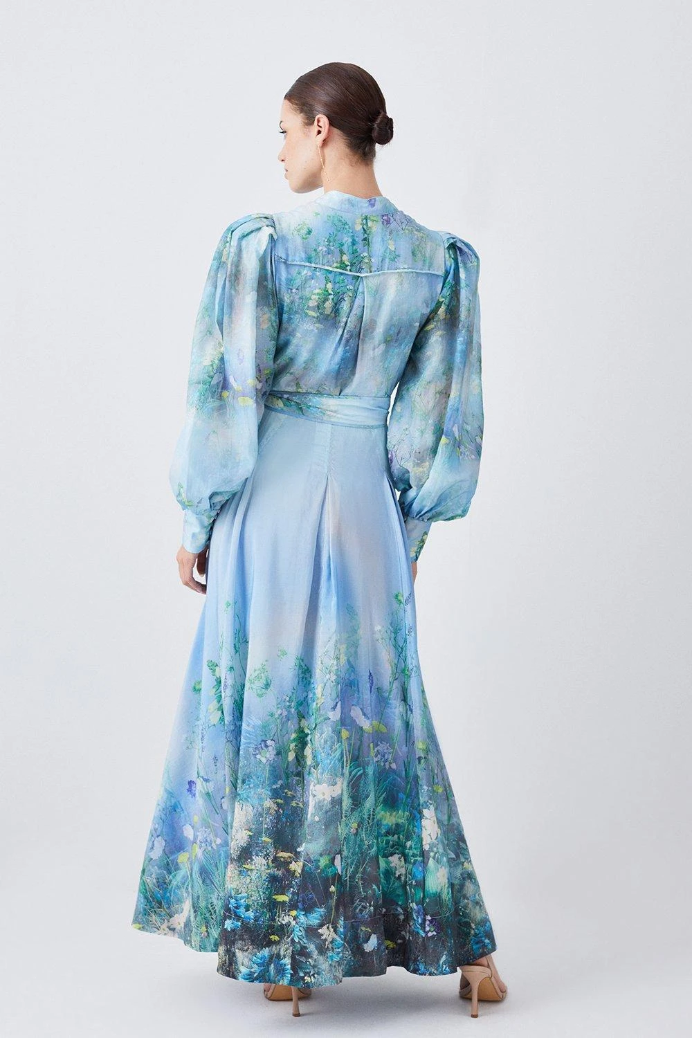 Enhanced with serene blue shades and a picturesque, meadow-inspired print, this maxi dress makes an idyllic wedding guest outfit. Exaggerated balloon sleeves add a level of drama, while an intricate floral print provides an elegant finish. This piece is crafted with a luxurious cotton-silk blend, giving it a soft feel.