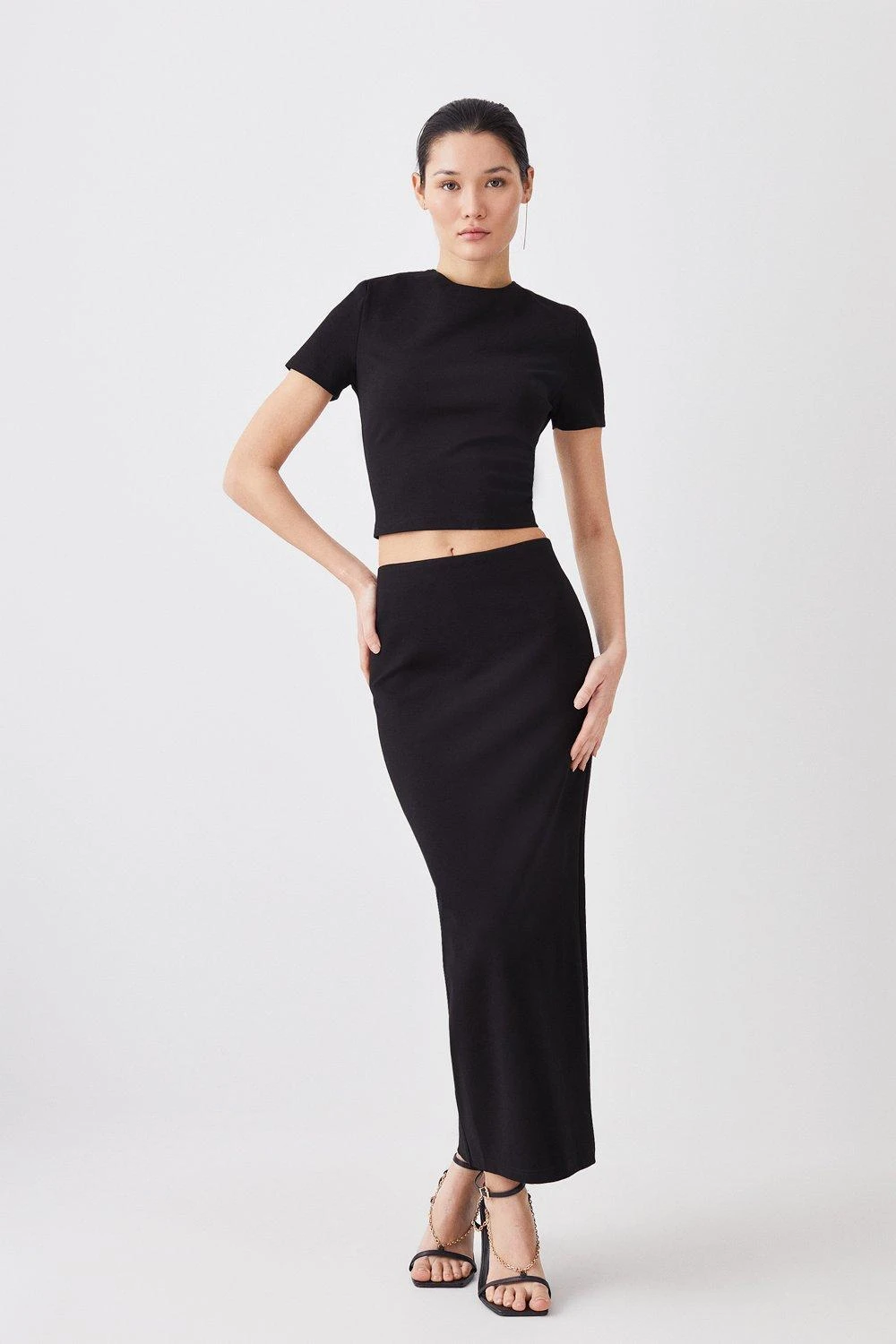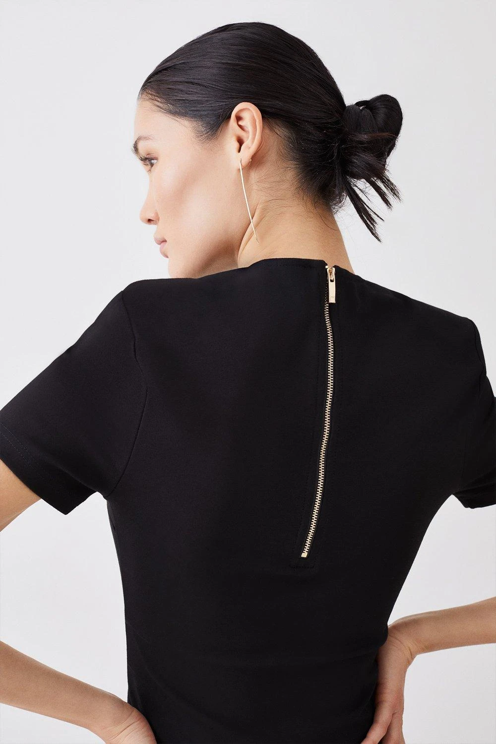 Karen Millen Ponte Gold Back Zip Detail Long Sleeve Top